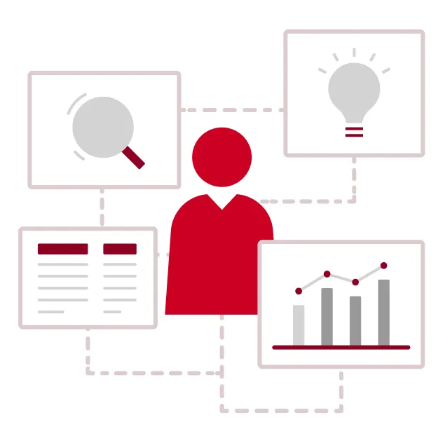 業務分析を通じて、あるべき姿を提案する人財です。お客さまへのヒアリングや調査から課題を抽出し、業務プロセスの改善案を提案していきます。